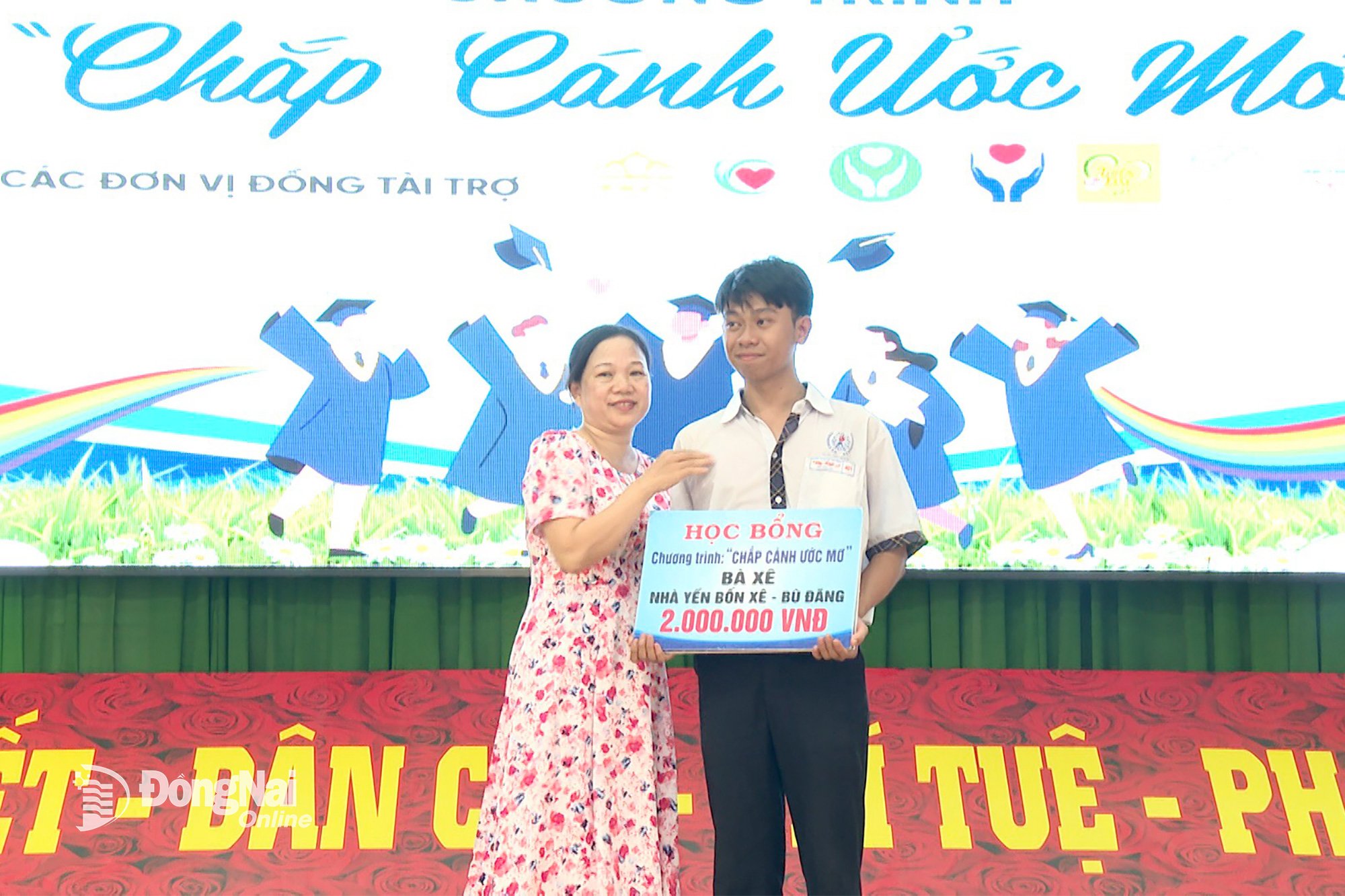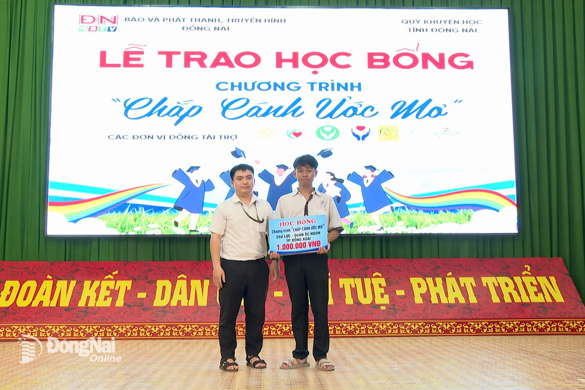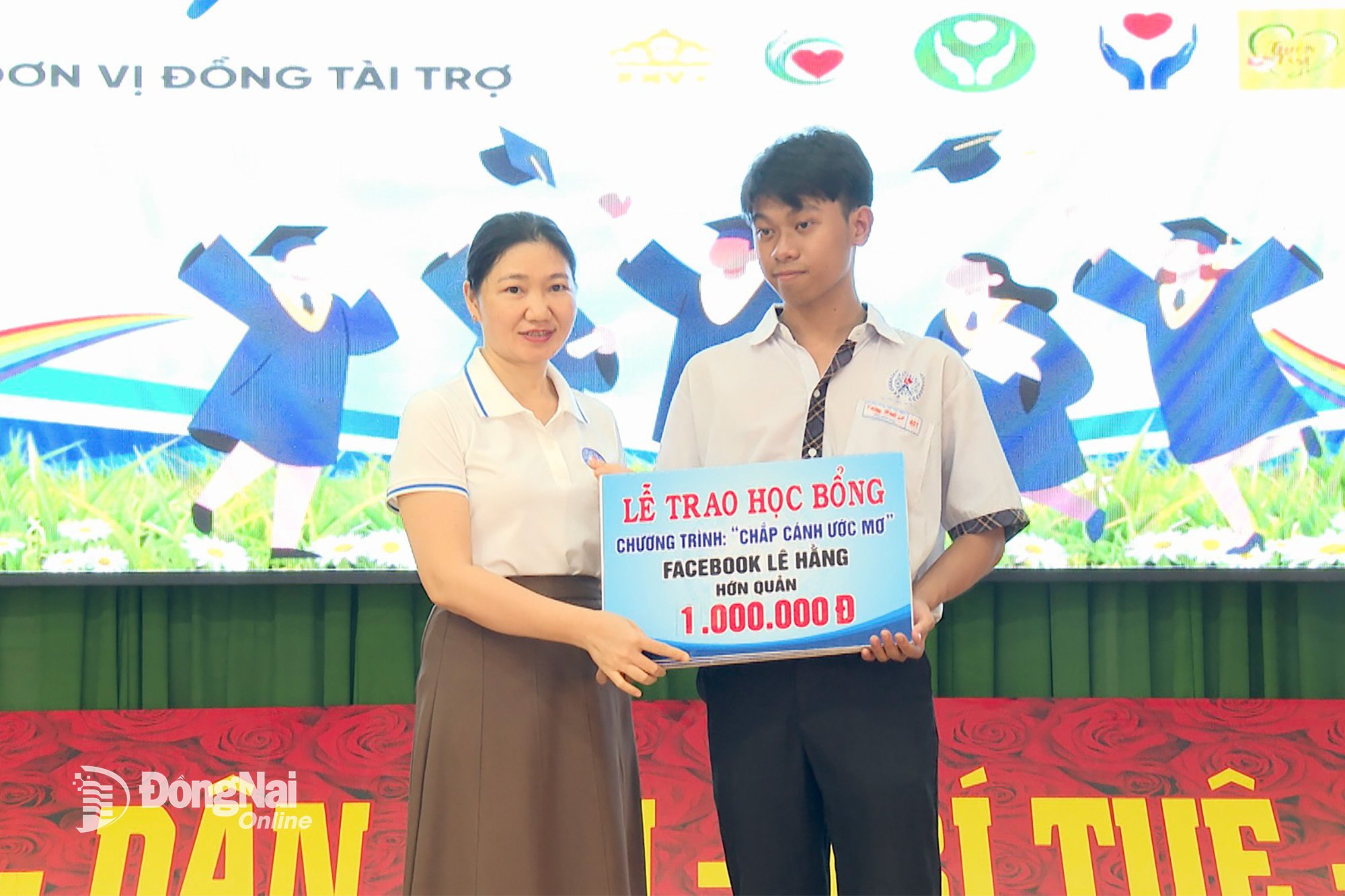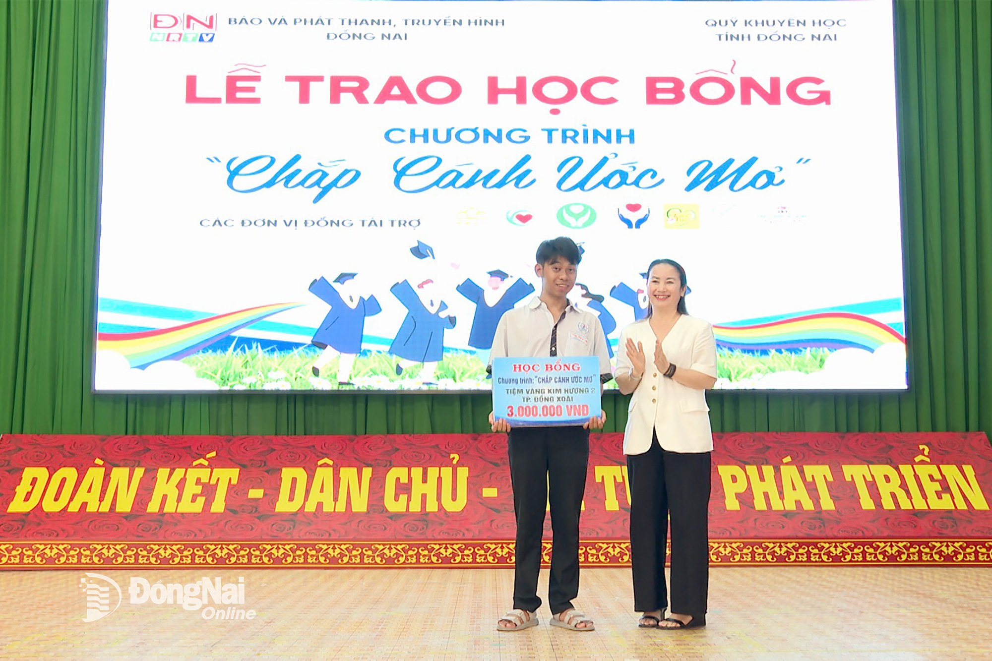 Quỹ Khuyến học tỉnh Đồng Nai trao học bổng trị giá 30 triệu đồng. Ảnh: Phú Quý |