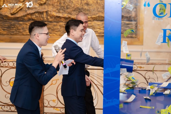 كل جائزة، قيمتها عشرة ملايين دونج، ليست مجرد هدية مادية، بل هي أيضًا شكرٌ لكل من عملوا معًا على مدار السنوات العشر الماضية. تم سحب عشر جوائز على مرحلتين، تخللتها عروض موسيقية، مما خلق إيقاعًا نابضًا بالفرح ممزوجًا بمشاعر تُجسّد روح "هوا فات": العمل الجاد - اللعب الجاد.