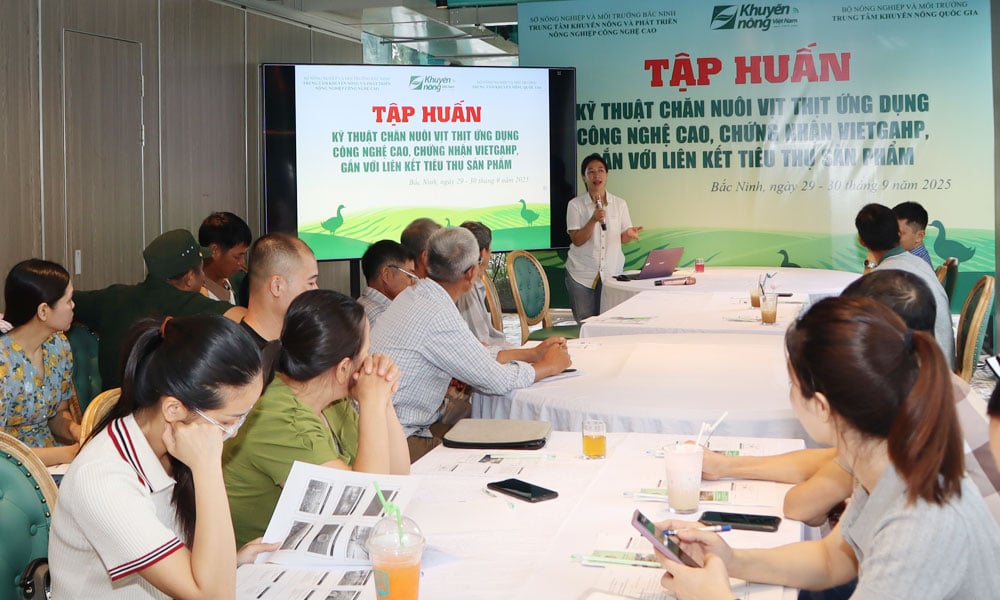 خلال فترة التدريب، تم تعليم الطلاب من قبل خبراء الثروة الحيوانية المحتويات التالية: مقدمة لبعض سلالات البط ذات الإنتاجية العالية؛ تقنيات الرعاية والتربية والوقاية من الأمراض الشائعة؛ عمليات تربية الماشية وفقًا لمعايير VietGAHP؛ تعليمات حول ربط استهلاك المنتج، وبناء سلسلة تربية ماشية آمنة ومستدامة.