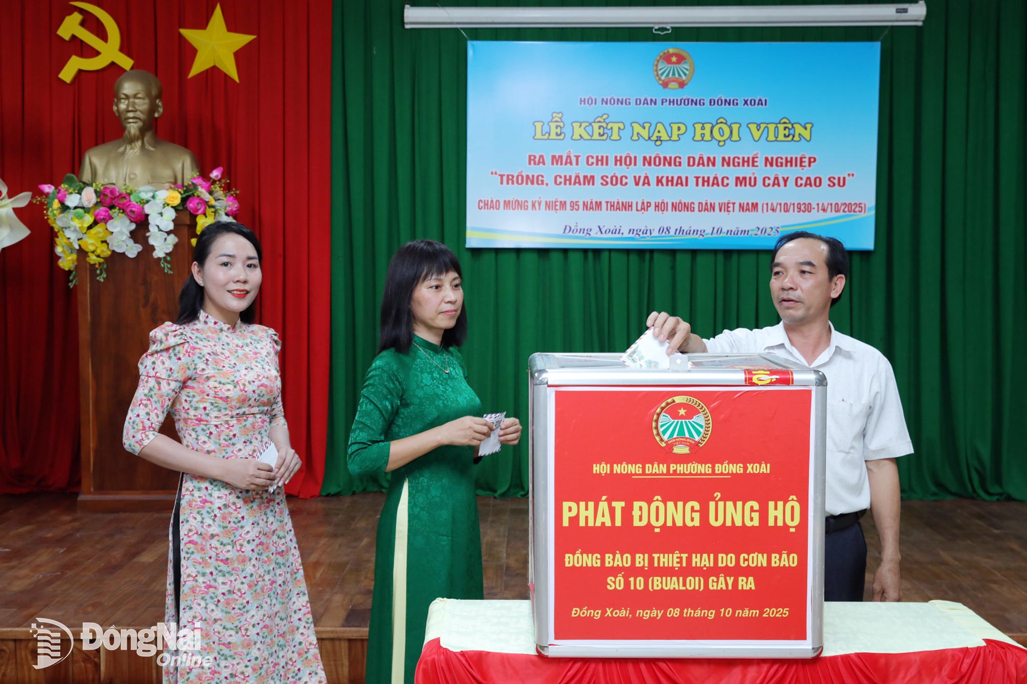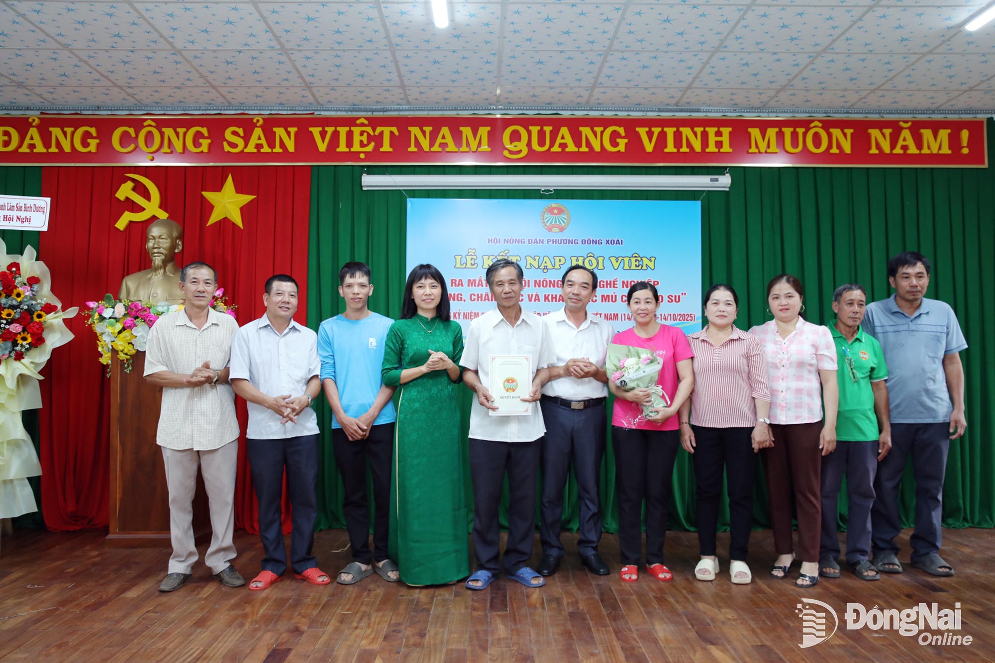 في الحفل، قبلت جمعية مزارعي مقاطعة دونج شواي 28 عضوًا جديدًا؛ وأعلنت عن القرار وأطلقت الجمعية المهنية "زراعة ورعاية واستغلال المطاط اللاتكس".