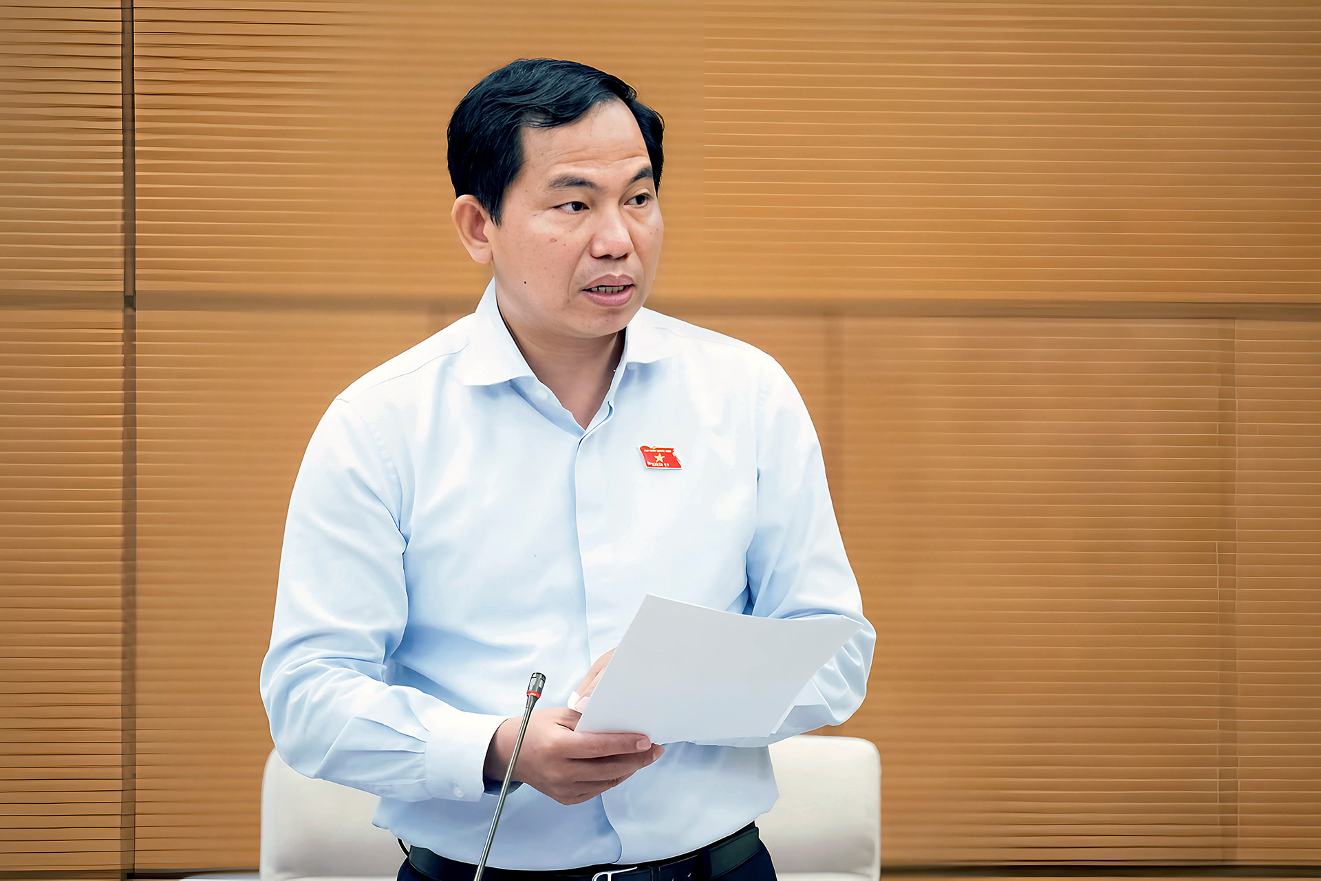 النائب الدائم لرئيس مكتب الجمعية الوطنية، لي كوانغ مانه، يُقدّم تقريره في الاجتماع. الصورة: الجمعية الوطنية
