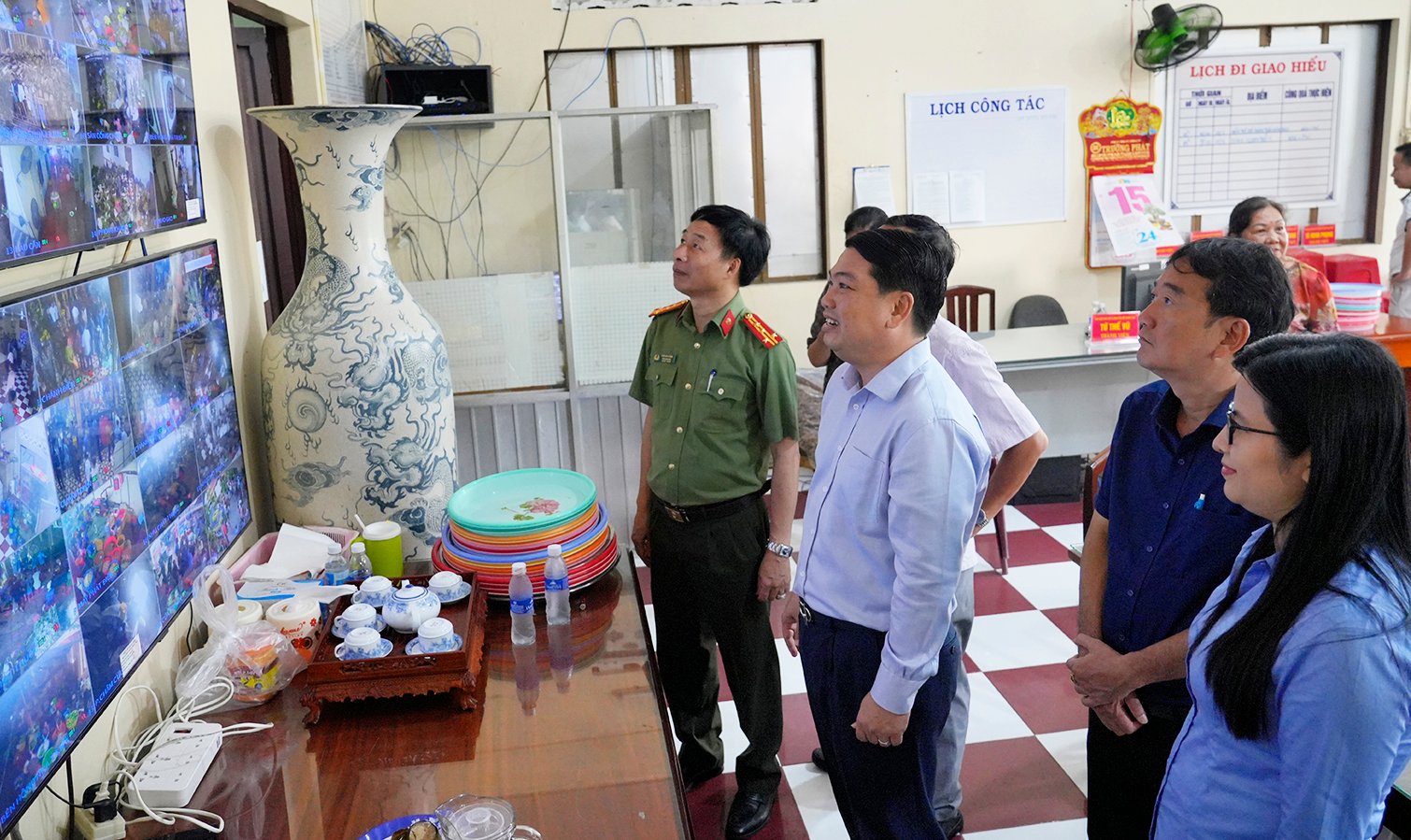 قام فريق التفتيش بفحص أعمال الأمن والنظام من خلال نظام مراقبة الكاميرات في منزل نجوين ترونغ تروك الجماعي.