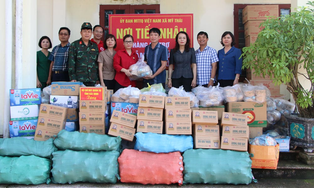 هنا أيضًا، قدّم مسؤولو الصليب الأحمر الإقليمي 1500 هدية، شملت مستلزمات أساسية كالحليب والماء والنقانق والمعكرونة سريعة التحضير والأرز... بقيمة إجمالية بلغت 60 مليون دونج فيتنامي لأهالي البلديتين. وتبرعت كلٌّ من شركة باك جيانج إل جي جي للملابس، وشركة دوي آنه للإنشاءات والتجارة، بمبلغ 50 مليون دونج فيتنامي لبلدية تين لوك لمساعدة سكان المناطق المتضررة من الفيضانات على تجاوز صعوباتهم قريبًا.