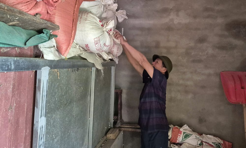 قام سكان منطقة ماي تونغ السكنية بوضع الأرز على أرض مرتفعة لتجنب الفيضانات. |