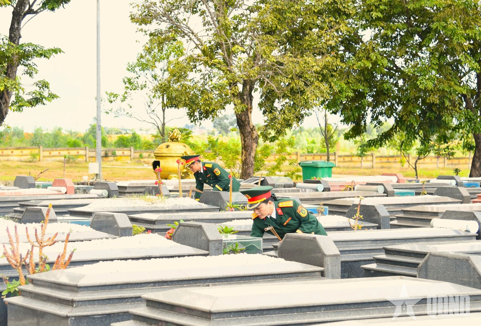 في مقبرة شهداء المنطقة العسكرية، مثوى الجنرالات والأبطال والضباط الكبار الذين كرسوا حياتهم للوطن، قدم المندوبون البخور تخليدا لذكراهم، وأعربوا عن امتنانهم العميق، وقدموا وعدا ثابتا: السير دائما على خطى أسلافنا، والوحدة، والسعي للتغلب على الصعوبات، وإكمال جميع المهام على أكمل وجه في الفترة الجديدة.