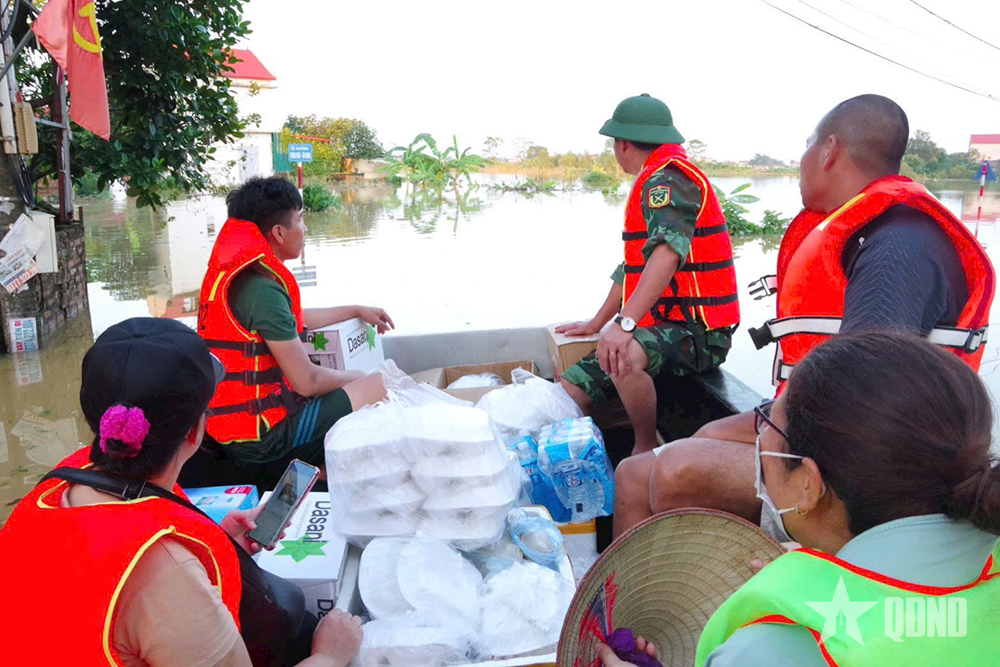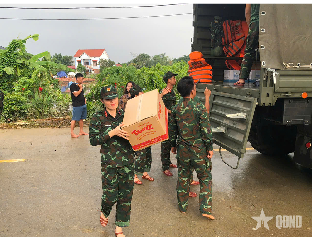 قام ضباط وجنود الفرقة 312 بالتنسيق مع أعضاء اتحاد المرأة في بلدية ترونغ جيا لاستخدام القوارب لتوصيل الأرز والضروريات إلى الأشخاص في المناطق المعزولة.