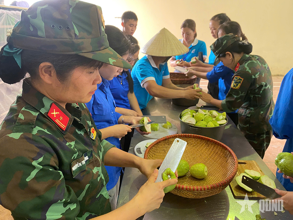 منذ الصباح الباكر من يوم 11 أكتوبر، قام الضباط والجنود وأعضاء اتحاد المرأة واتحاد الشباب ومعلمي روضة الأطفال باك سون ب بإعداد مئات الوجبات الساخنة وتسليمها للأسر المعزولة.