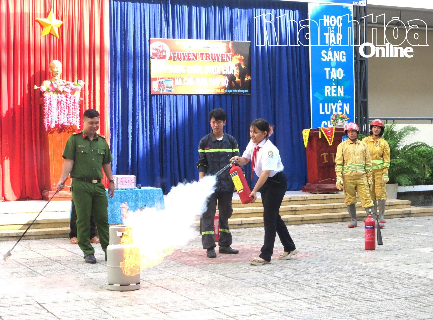 يتدرب الطلاب على استخدام طفايات الحريق. |