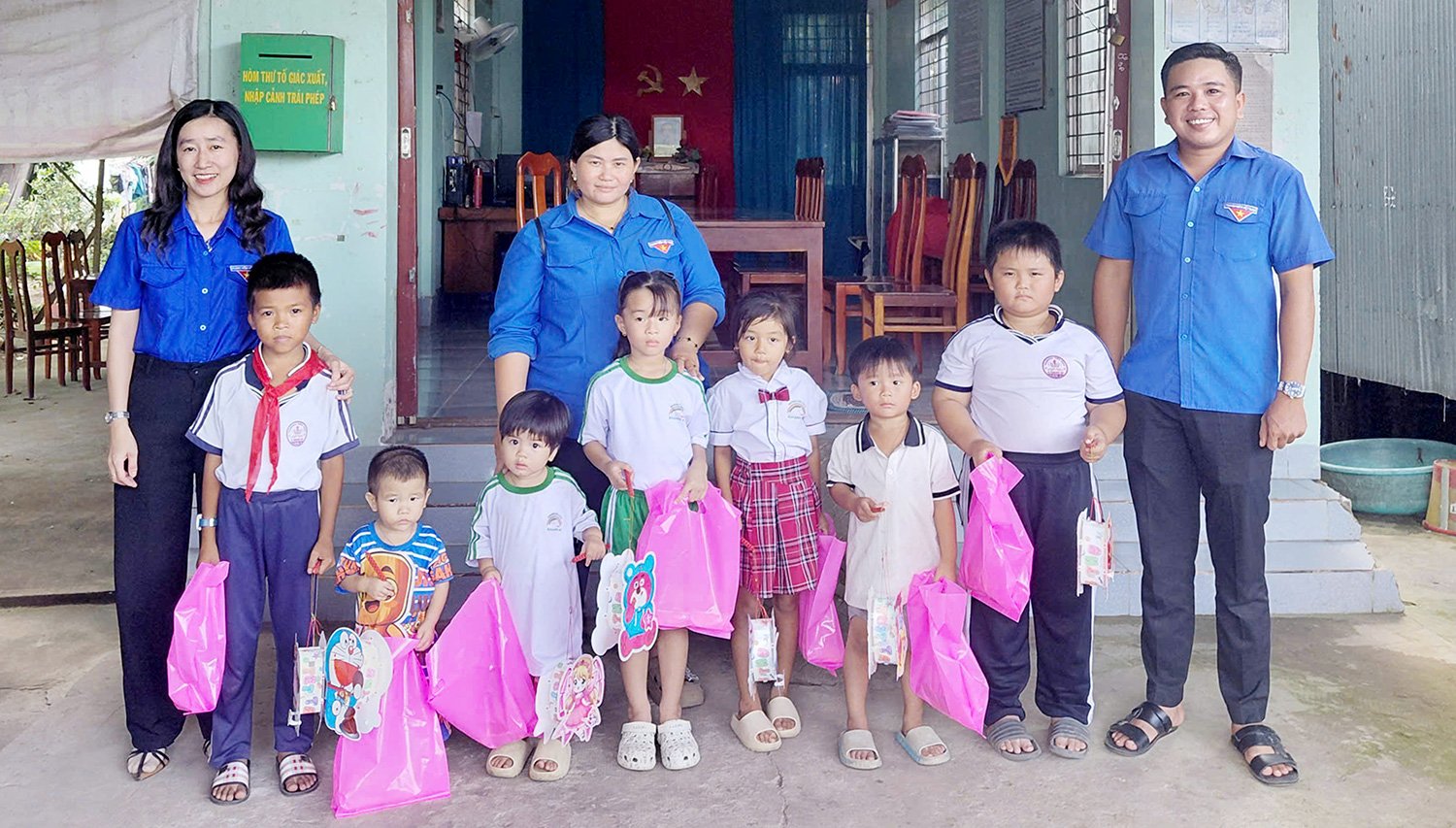 اتحاد شباب بلدية خانه بينه يوزع هدايا منتصف الخريف على الأطفال. الصورة: ترونغ تين