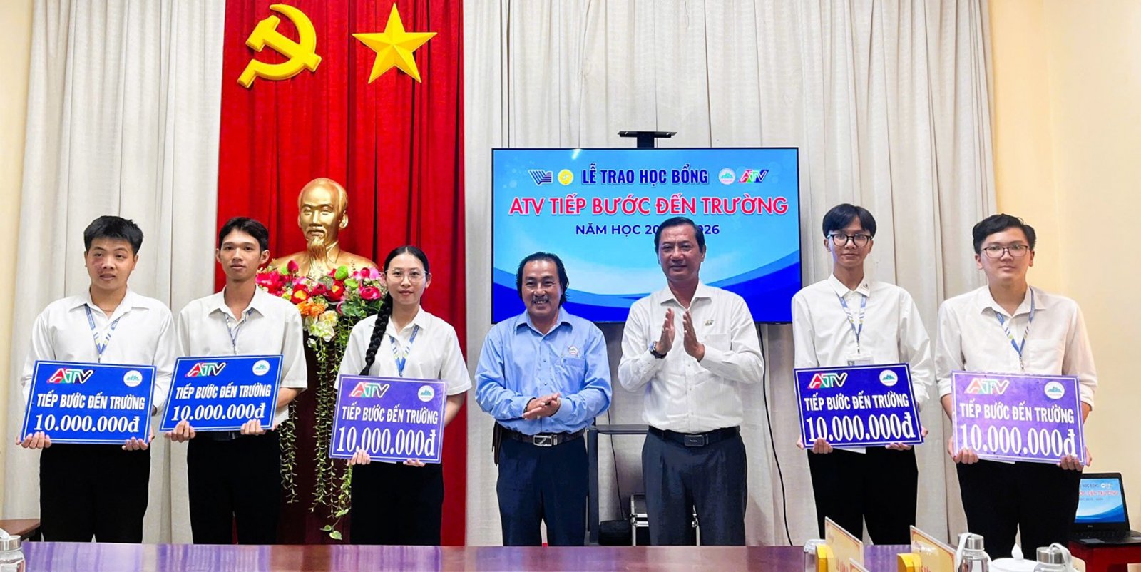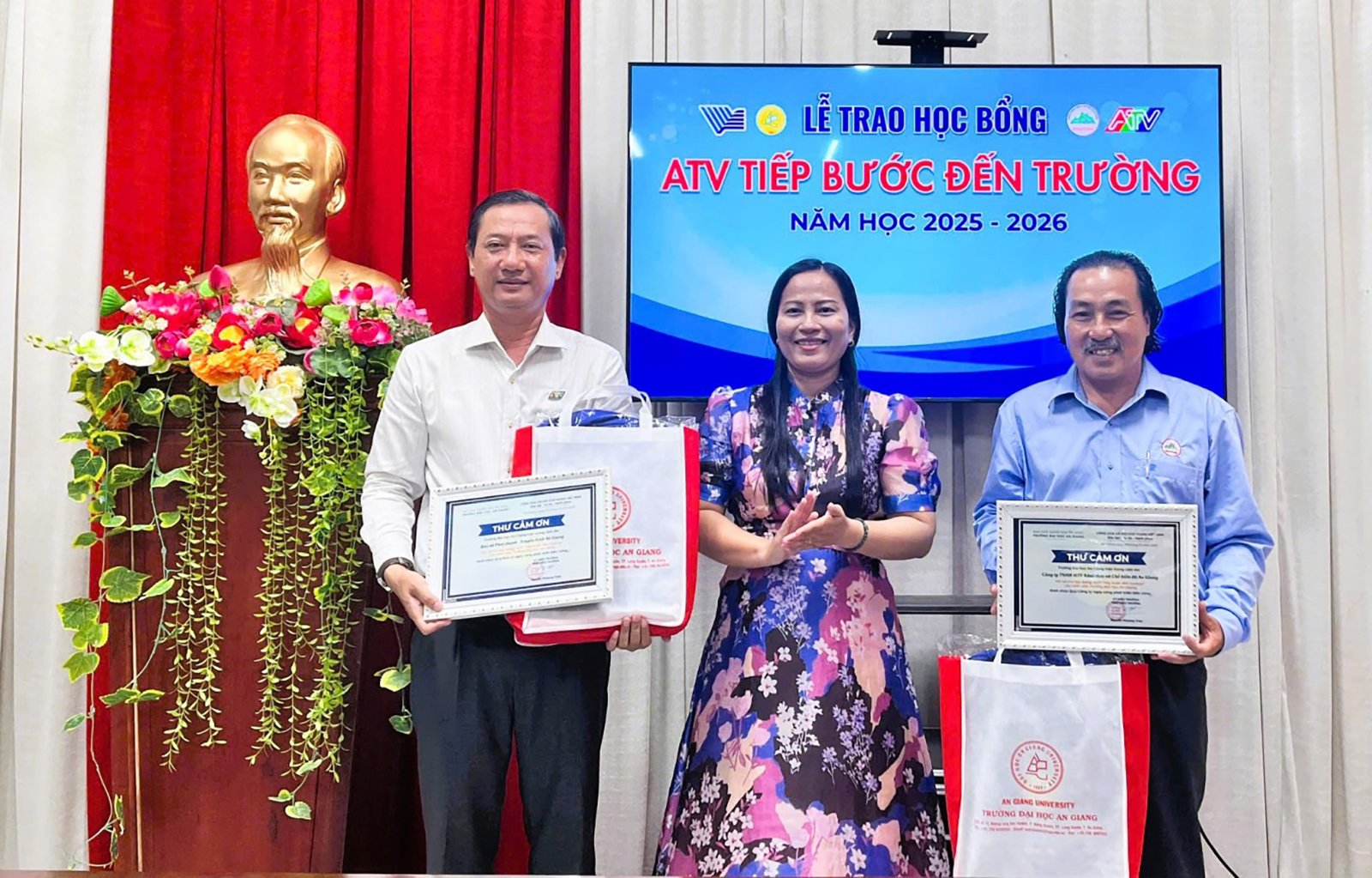 Theo đó, 10 sinh viên tiêu biểu của Trường Đại học An Giang đã được trao Học bổng “ATV Tiếp bước đến trường”. Mỗi suất học bổng trị giá 10 triệu đồng do Công ty TNHH Một thành viên Khai thác và Chế biến đá An Giang hỗ trợ, tổng trị giá 100 triệu đồng.