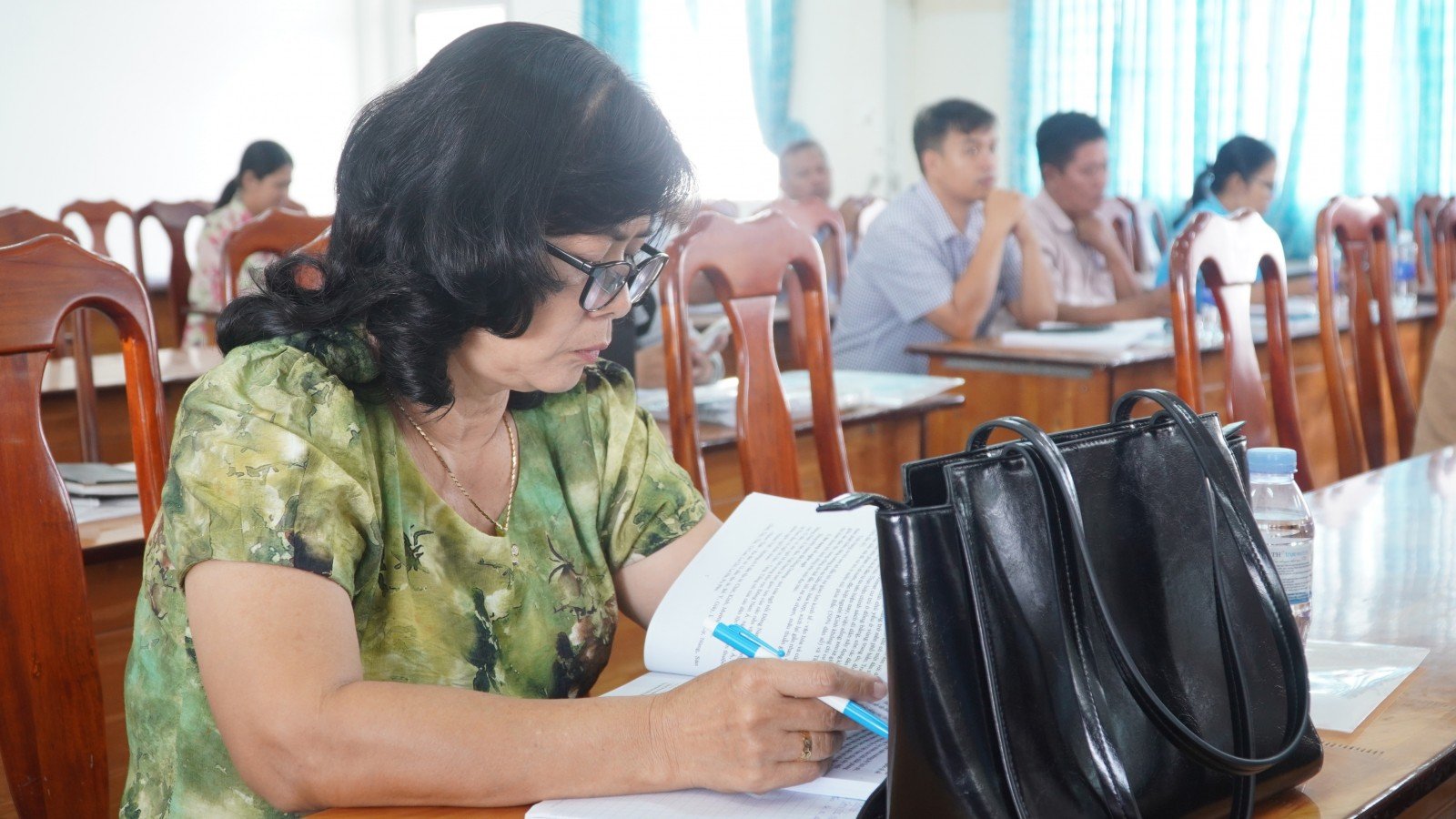 Đại biểu nghiên cứu tài liệu tại hội nghị tập huấn.