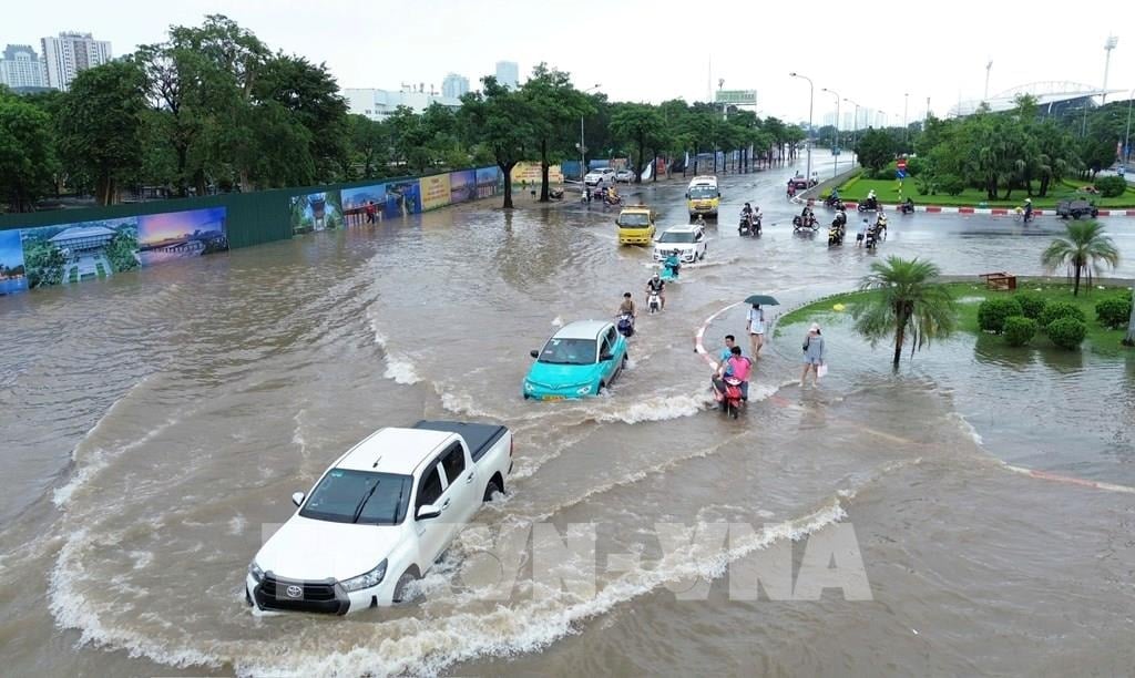 Ngập sâu tại đường Lê Đức Thọ. Ảnh: TTXVN.