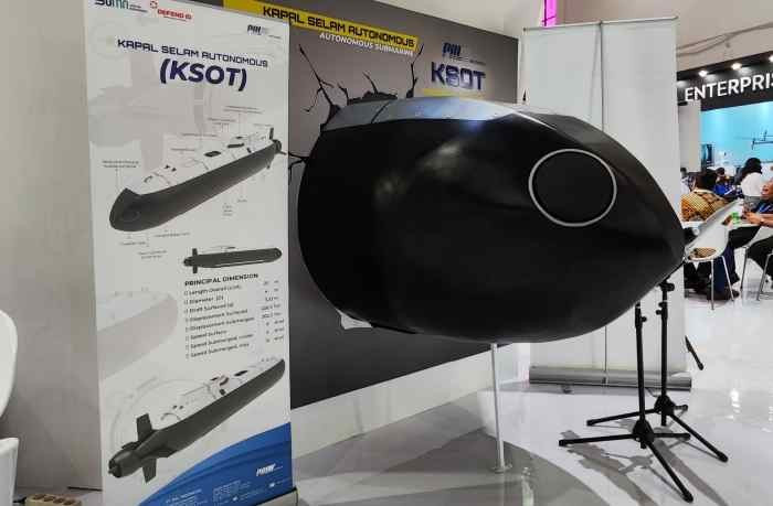Lần đầu tiên, Indonesia công khai mẫu tàu ngầm không người lái KSOT (Kapal Selam Otonom) tại Jakarta, thu hút sự chú ý lớn của giới quân sự quốc tế.